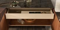 We use wood veneers of the highest quality from responsibly managed forests, and natural materials such as stone foil as well as practical but elegant ceramics