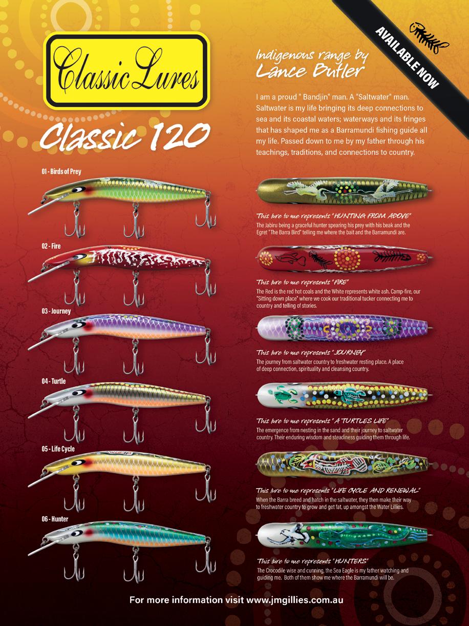 placing serious focus on hooks, hook placement, casting distance and, of course, action. The longer the cast across a flat, the more water I cover and the less chance I have of spooking bigger fish. The Node covers all the traits I want in a lure for targeting big dusky flathead.