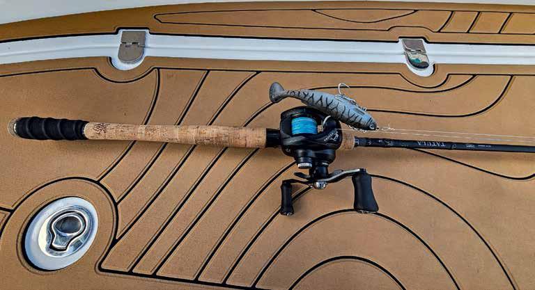 extra-heavy, the Tatula 762XHFB-SB delivers enormous stopping power, yet retains a surprisingly responsive action. The tip section stays sensitive and alive, allowing you to work big baits effectively, while the lower third of the blank loads progressively yet locks up with serious authority when it’s time to set the hooks on a metre-plus fish. It’s rare to find a rod capable of launching 6-9in swimbaits comfortably while maintaining genuine feel through the blank but this does exactly that.