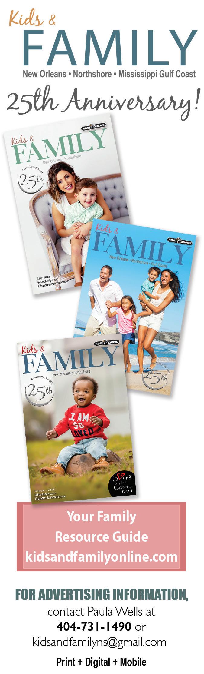 kidsandfamilyns.com kidsandfamilyneworleans.com Paula Wells, Publisher 404-731-1490 kidsandfamilyns@gmail.com