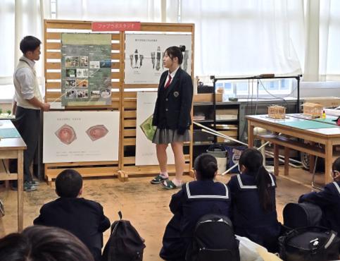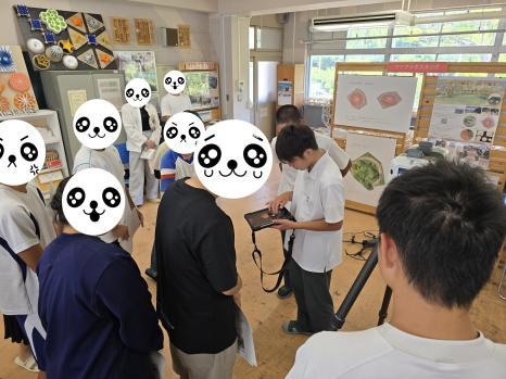 Figure16.AttheschoolOpenDay, studentsexplainedtheworkflowand outcomesofpoint-cloudmeasurement (visualisation)toprospectivejunior-high studentsandtheirparents/guardians.By presentingthesequencefromacquisition throughorganisationtoexplanation,they practisedthecompleteprocessofsharing outcomesandinformation.