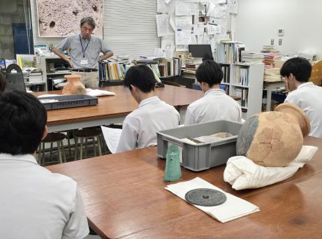 Figure20.Lectureoncultural-property investigationattheInstituteofHistorical Studies,OtemaeUniversity.Through observationofartefactsandexplanations ofinvestigativemethods,students confirmedanalyticalperspectivesand approachestoconservationusedin cultural-heritageresearch.Thiswas positionedaspartofapractical collaborationthatlinksconstructionsector3Dmeasurementanddata utilisationtothecultural-heritagefield.
