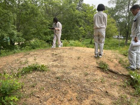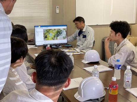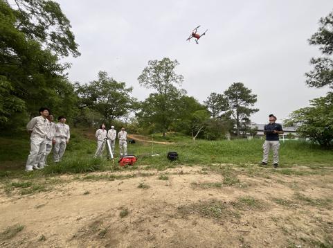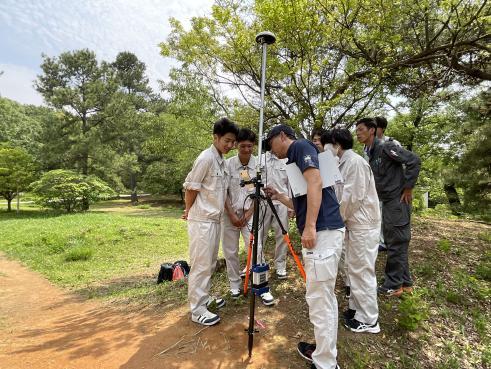 Studentsconfirmedproceduresfor establishingandobservinggroundcontrol points(GCPs)anddevelopedan understandingofthepositional-accuracy requirementsneededfordronesurveying andpoint-cloudgeneration. IncollaborationwithHarimaSekkei ConsultantCo.,Ltd.