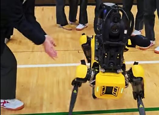 Figure23.Operationalexperiencewith thequadrupedrobotBostonDynamics Spot,deliveredwithsupportfrom SpaceGrabCo.,Ltd.Inthegymnasium, demonstrationsofautonomouswalking andremoteoperationwerecarriedout, andstudentsconfirmedbasictabletbasedcontrols.Thesessionalsoexplored potentialapplicationsforpatroland inspectioninenvironmentsthatare difficulttoaccess suchasconstruction sites,tunnels,anddisasterareas and sharedanoperationalconceptinwhich 3Ddatacapturedbyonboardsensorsis integratedwithpoint-cloudanalysisand BIM/CIMtosupportremotesituational awarenessandassetmaintenance.