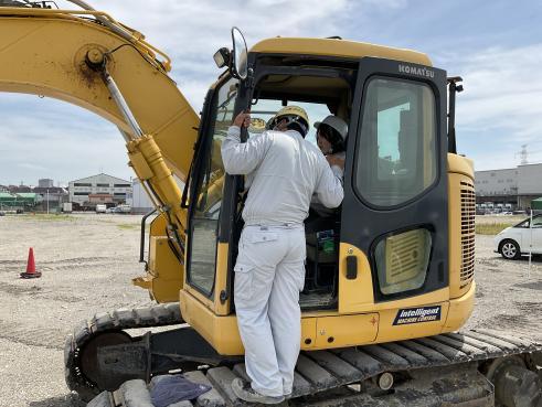 Figure24.Operatingexperiencewitha backhoeequippedwithmachineguidance (MG).Studentsexaminedhowexcavation andgradingaresupportedusingsurvey dataandunderstoodhowICT-enabled constructionmachinerycanimprove executionaccuracyandoperational efficiency.