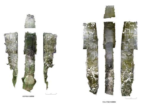 Figure12.Developeddrawingsofthe stonechambersofIkejiriNo.8Kofun(left) andMasudayamaNo.15Kofun(right). Usingpoint-clouddatacapturedbylaser scanning,thechamberinteriorswere convertedintodrawings,visualisingthe stoneworkgeometryanddimensional relationshipsastwo-dimensional referencematerials.Theseoutputscan serveasbaselinedocumentationfor investigationandconservation.