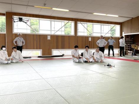 Figure22.Drone-operationtraining deliveredwithTamura-gumiCo.,Ltd.as instructors.Inanindoorsetting(the martial-artshall),safetyconditionswere establishedinadvance,andstudents practisedbasicpilotingandconfirmedkey operationalconsiderations.Thissession waspositionedasfoundationaltraining