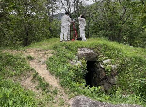 theHeisōLakeKofunCluster(LateKofun period)wasrecordedashigh-accuracy pointclouds.Theteamalsoestablisheda practicalbasisfordigitalarchiving, includingacquisitionproceduresfor confinedspaces.Thecaptureddatasets weresubsequentlyusedtoproduce developeddrawingsofthechambers.