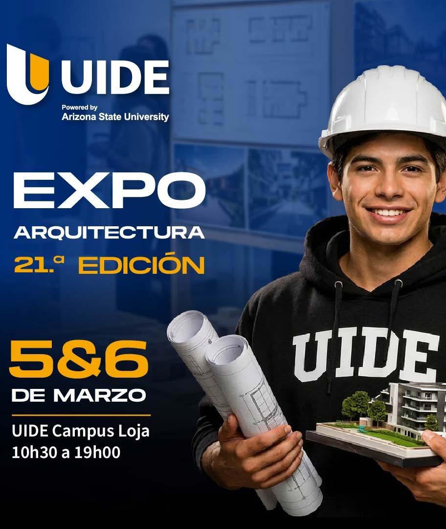 La Universidad Internacional del Ecuador (UIDE), campus Loja, a través de su Escuela de Arquitectura, invita a la comunidad a participar en la Expo Arquitectura 2026, que se celebrará los días 5 y 6 de marzo en su Campus ubicado en Calle Agustín Carrión Palacios, entre la Av. Salvador Bustamante Celi y la calle Beethoven, en el sector Jipiro. Esta exposición, en su edición número 27, reúne los trabajos finales de los estudiantes de la carrera.