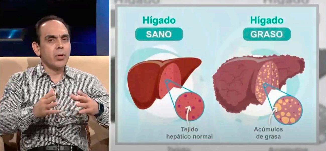 “Una cosa es tener el hígado graso o esteato de hepatitis y otra llegar a una de las complicaciones más serias que es la cirrosis hepática, cuando se está poniendo la consistencia dura en el hígado, a consecuencia de que esa grasa se está haciendo cada vez más sólida”, explicó en entrevista el doctor Juan Carlos Caramés, del Centro de Endoscopía Terapéutica Avanzada