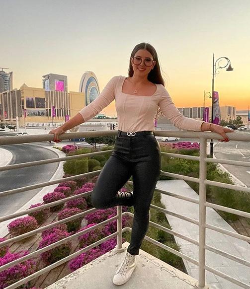 Linda se encarga de hacer sus notas en dis tintos puntos bonitos de Doha además de reali zar los consabidos y sobadísimos enlaces al fi nal del partido donde agarra a aficionados que van saliendo del estadio para preguntarles qué les pareció el encuentro.