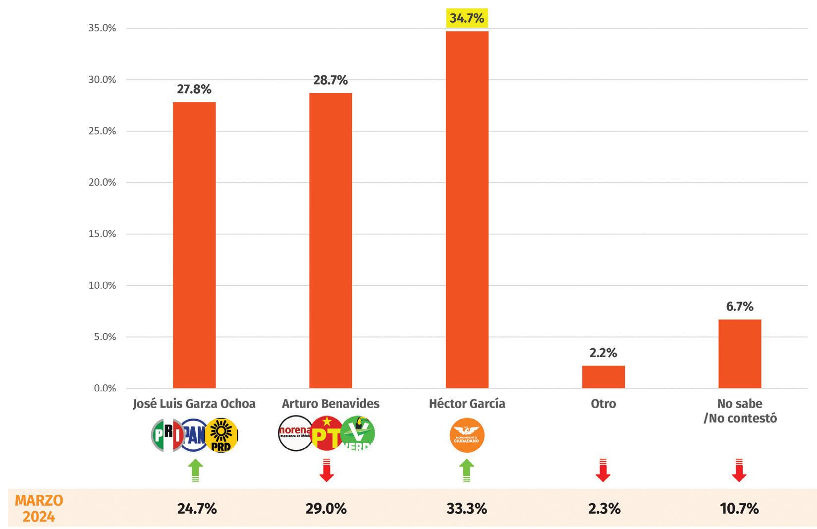 Hora Cero Encuestas presenta la segunda medición de las preferencias electorales a la alcaldía de Guadalupe, donde el candidato de MC, Héctor García, incrementó su ventaja sobre sus competidores.