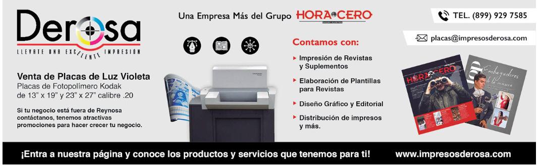 Se prohíbe la reproducción total o parcial del contenido de esta edición sin la autorización previa por escrito. Hora Cero es miembro de la Sociedad Interamericana de Prensa (SIP), aprobado en la junta de directores que se realizó en Chicago, Illinois, en octubre de 2003. Publicado y Distribuido por: Verbo Libre Editores S.A. de C.V. Abasolo Ote. #851-A Monterrey, N.L. Tels: (81) 83404064, (81) 83404076, (81) 83423539
