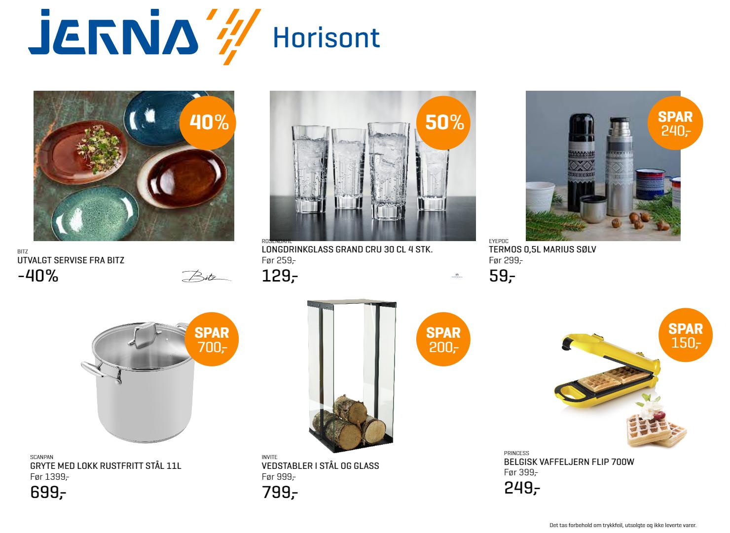 11 LØRDAG Alle puslespill -15% Alle ord. skinnvesker -20% Alle Beckmannsekker -25% Alle ytterjakker og strikk -20% Massasje Bruk koden HORISONT når du booker på nett eller via tlf. Må bookes i perioden 19.-22. oktober. -25% Musefelle Før 1799,Nå 300,Ytterjakker & strikk 30-50% Utvalgte varer Alle lamper -20% Deksler fra Mobique INTRODUKSJONS TILBUD Sabor støpejern gryte 9,5l rød -40% Prispunkt kjole Før 599,95 Nå 250,Moroccanoil Før 425,Nå 249,Utvalgte varer -40% -20% Leker Begrenset antall. 500,EKSTRA i mobilpant ved kjøp av ny mobil med delbetaling Før 2399,Nå 999,-30% Alt metall -50%-25% Ved kjøp av 3eller flere varer Gjelder ord.varer -20% PRISFEST PRISFEST PRISFEST PRISFEST PRISFEST PRISFEST PRISFEST PRISFEST PRISFEST PRISFEST PRISFEST PRISFEST