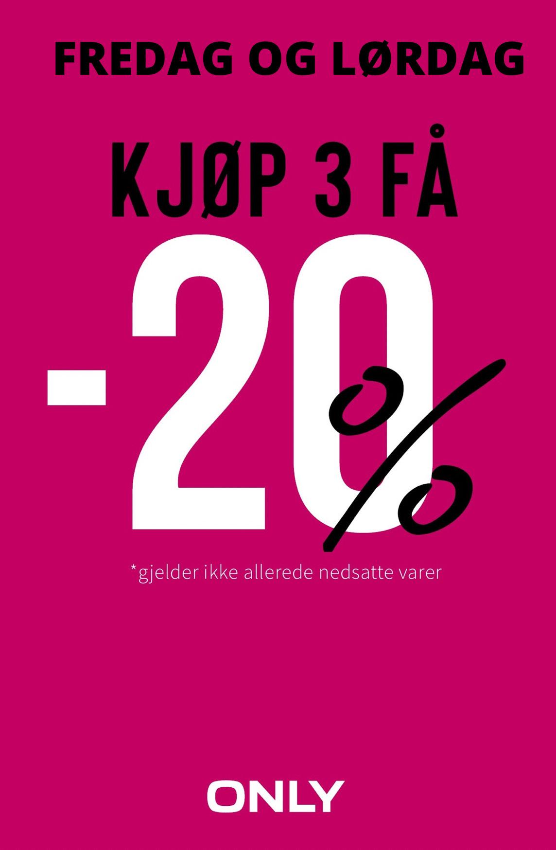 9 FREDAG Alle fjernstyrte biler -20% Guess, Kipling og Mandarin Duck -20% Alle kort 3 for 2 -25% Alle ord.varer Ved kjøp av 3eller flere varer Gjelder ord. varer -20% -20% Massasje Bruk koden HORISONT når du booker på nett eller via tlf. Må bookes i perioden 19.-22. oktober. -30% Friends joggebukse barn str.2-8 / NP jr joggebukse str.8-16 Ytterjakker & strikk 30-50% Utvalgte varer Alle lamper -20% Deksler fra Mobique Gjelder av ord. pris og ikke wearables eller Apple Airpods. Alt av accessories Alle varer -25% -25% Senger/ kattehuler *Gjelder ikke allerede nedsatte varer. 30% på alt tilbehør -30%-25% -50% Handle for kr.400,Få 20% rabatt Gjelder ord. pris -30% + 70% på en rekke styles -30% Valgfri vare -30% All kurv -40% På hele kjøpet* *Gjelder ord. varer. Ikke møbler og tepper. Gjelder ord. varer