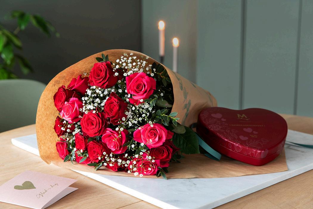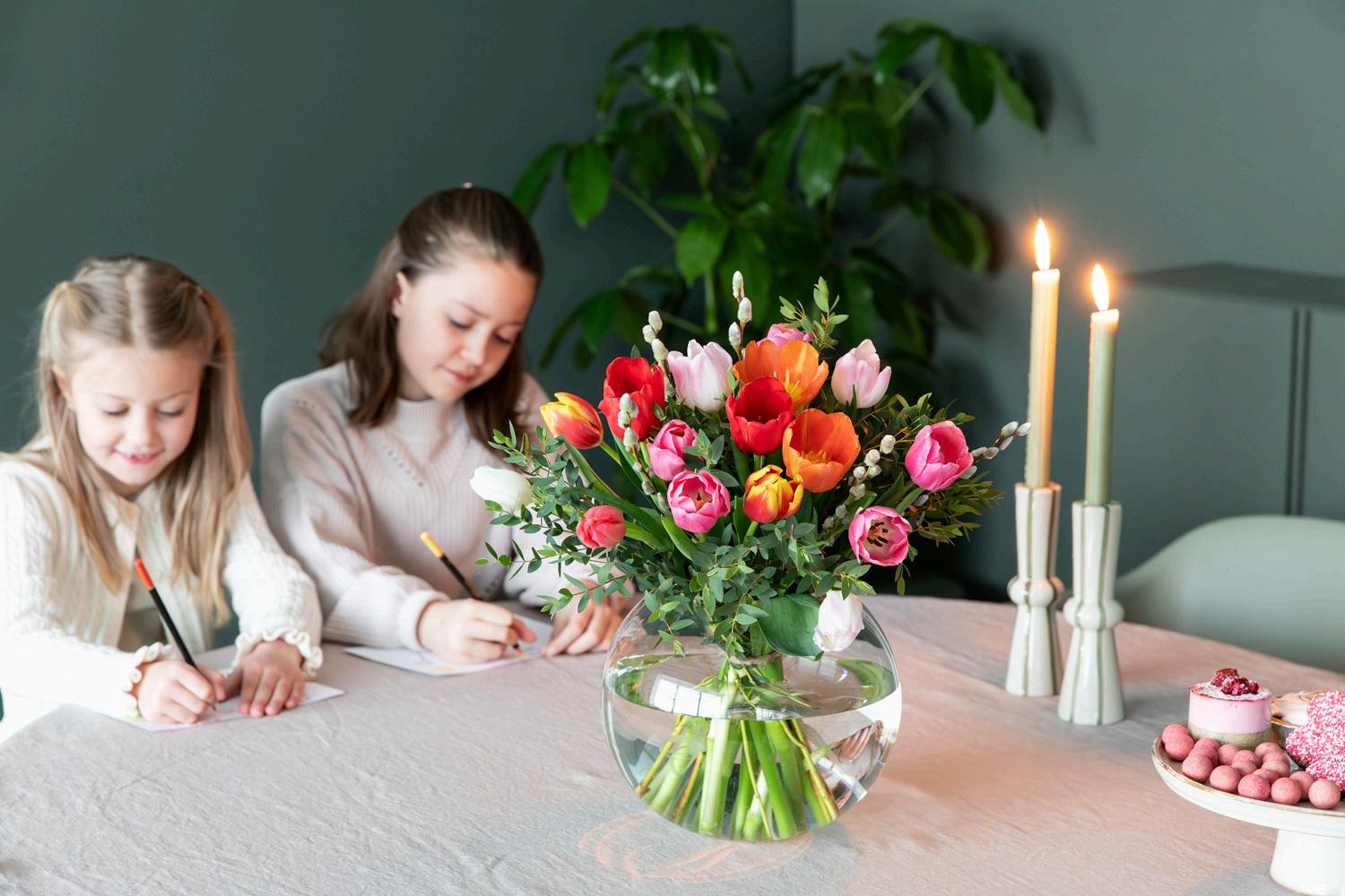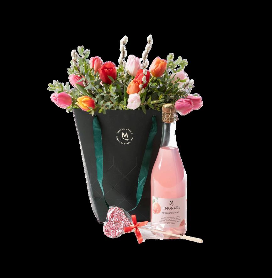 Tulipanbukett, limonade & sjokoladehjerte, Mester Grønn