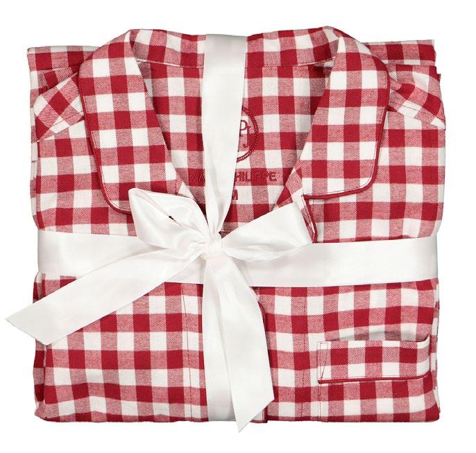 Pysjamas rød, Cubus, kr. 249,Tøfler brun, Skoringen, kr. 499,-