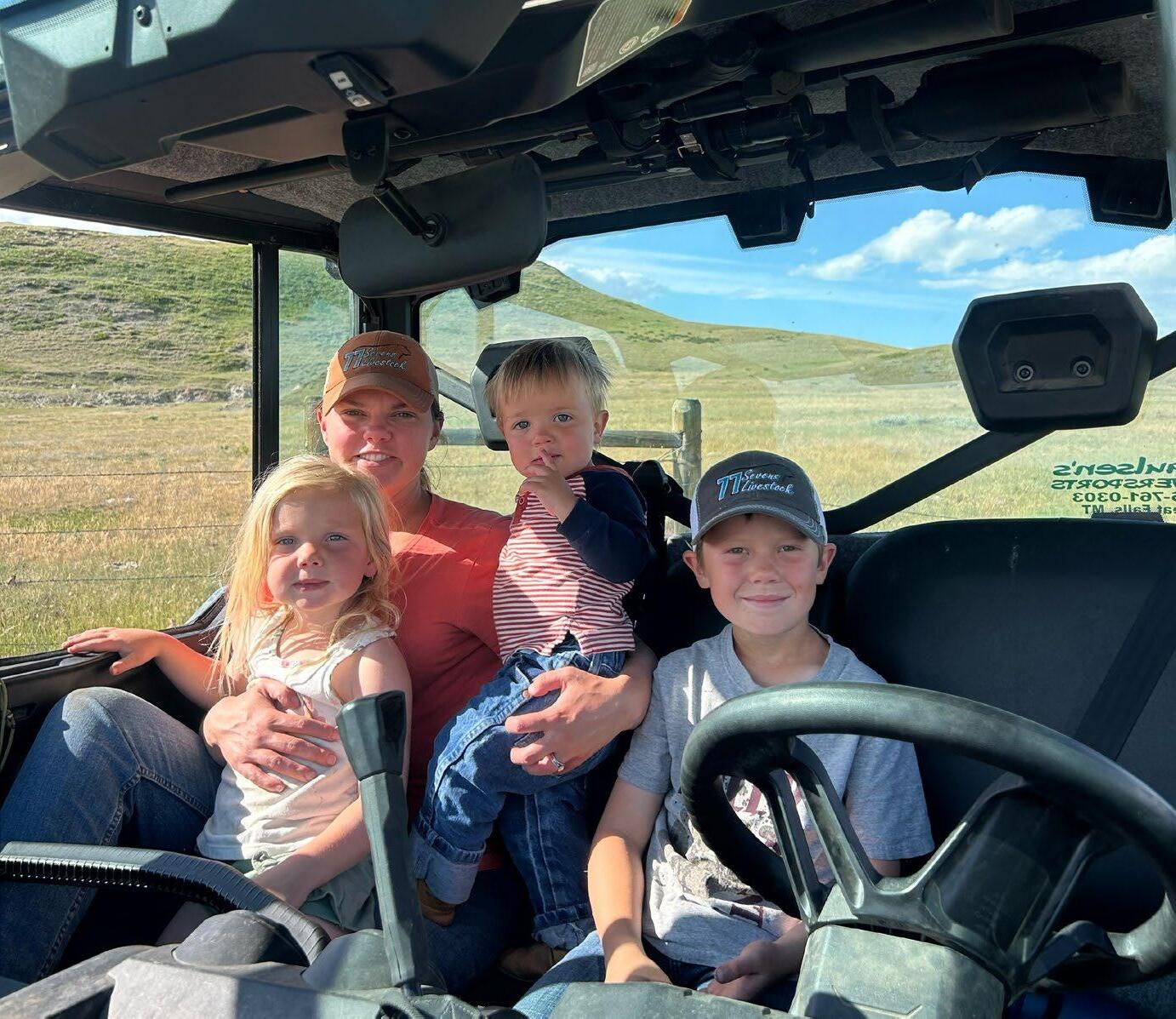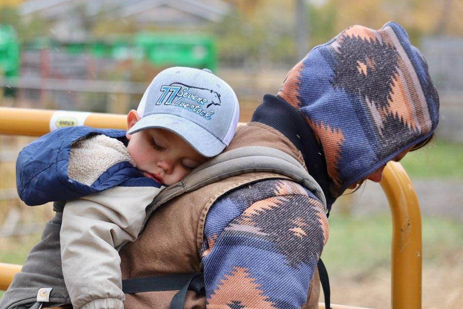 After our oldest, Brooks, was born, we felt the pull to move closer to Karli’s family, who were in Helena by that time, and drought in Sidney helped push the decision. We brought our commercial cow herd with us to Choteau for the winter while we hunted for summer grass. We began leasing J.D. and Linda’s place and bought the registered herd they had built since the early ’90s. We sold our commercial cows and focused on the registered portion of the business. Today, we run 150 registered females and continue to share these genetics through our private treaty bull sale.