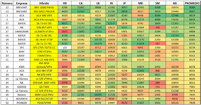Red de evaluación de híbridos de maíz en fecha de siembra temprana