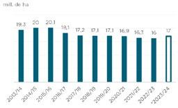 Terré apuntó que la campaña de soja 2023-24 se desarrolla con un escenario marcado por la menor producción de Estado Unidos, la recuperación de la producción argentina -luego de la sequía histórica que devastó la cosecha 2022-23- y otra gran producción de Brasil.