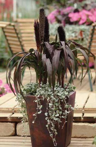 207 GRASSES Pennisetum Jade Princess 264 BKX 14 - 22 8 - 10 weeks 12 - 17 cm 40 - 60 cm Pennisetum Purple Baron 264 BKX 14 - 18 8 - 10 weeks 12 - 17 cm 40 - 60 cm Pennisetum Fluffy 264 BKX (3+) 14 - 18 6 - 8 weeks 12 - 17 cm 20 - 30 cm Melinis 264 BKX (3+) 14 - 18 20 - 30 weeks 12 - 14 cm 35 - 40 cm PURPLE BARON 7420700 Melinis houstonianum SAVANNAH 7210700 Pennisetum glaucum JADE PRINCESS 7420320 Pennisetum villosum FLUFFY 7420850