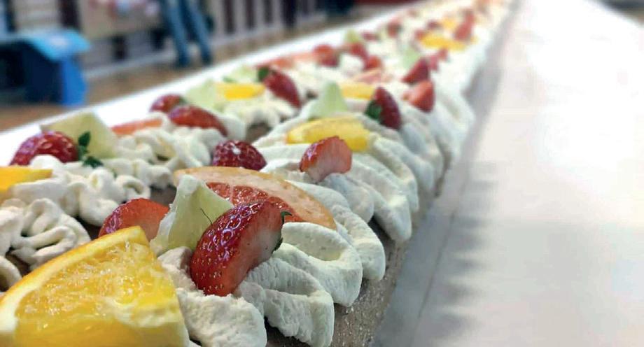 En imponerende syv meter lang roulade markerede de 70 år på en yderst delikat måde. Foto: Fjordlandsskolen afdeling Skuldelev