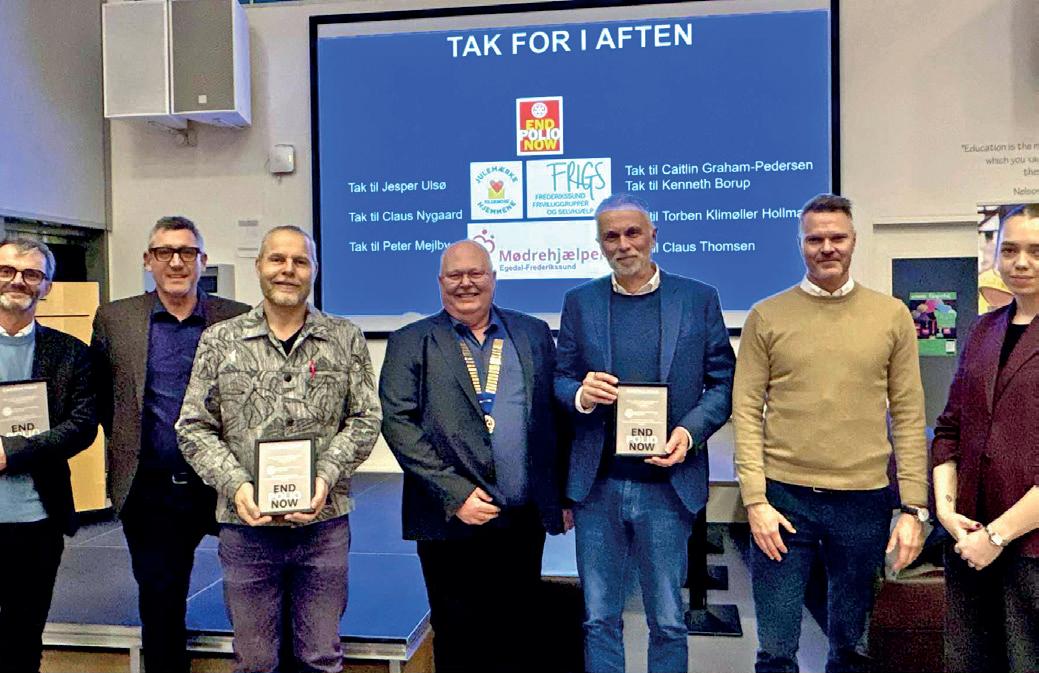 neret livslang poliovaccine til 30 børn i deres navn. Arrangementet indbragte et overskud på 18.000 kroner, som fordeles ligeligt mellem Julemærkehjemmet Kildemose, Mødrehjælpen Egedal & Frederikssund samt FRIGS (Frederikssund Frivilliggrupper og Selvhjælp). Efter den faglige del var der levende debat, spørgsmål og netværk blandt de mange fremmødte – og stor ros til Rotary Frederikssund Falkenborg for et både oplysende og meningsfuldt arrangement. /TS