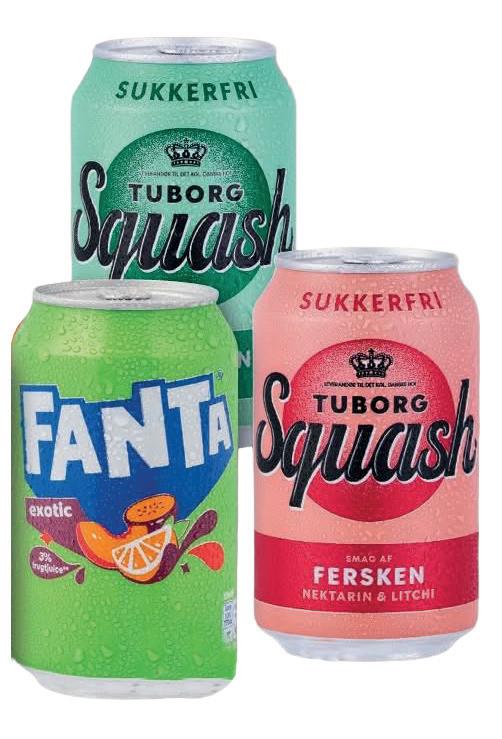 Coca Cola, Cola Zero, Fanta, Tuborg Squash, Ramlösa Citrus eller