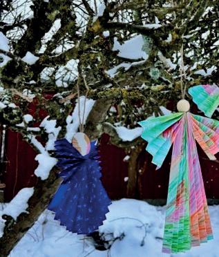 Deltagerne folder en nytårs-sneengel af det smukke, selvskabte materiale. Din engel vil resten af året minde dig om alt det, du gerne vil have til at ske resten af året.
