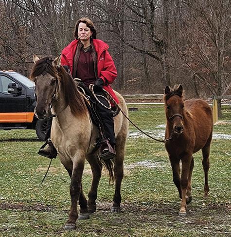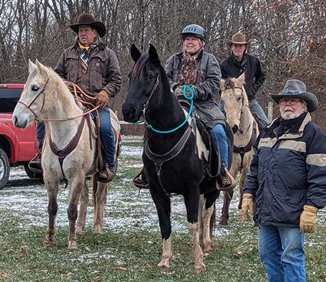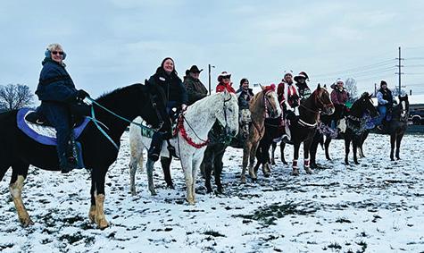 courage, and clarification calling us. “This year doesn’t whisper. It thunders, breaking old patterns, burning through stagnation and dragging every buried dream into the light.” Quote from Awakening Education on the Internet. Meanwhile, back in December, Michelle S., Michelle H., Savannah and I decorated a four and one half foot Christmas tree for our OHC Lake chapter at the Willoughby Hills Community Center in Willoughby Hills. We had a delightful time putting on the various horse ornaments, lights, garland and other trimmings. Michelle H. did most of the actual placements on the tree. We others made suggestions and Michelle S. bought lunch. We look forward to adorning another Christmas tree in 2026 with pictures of our members and their horses. We also anticipate creating a very large Christmas card for the Community Center’s Trail of Holiday Greetings. Donna recently lost her beloved 32-year-old Morgan mare, Magic. Our sympathies go out to Donna, who dearly misses her mare and her other horses, and all the joy they brought her. Tina has been attending several Cowboy Mounted Shooting events at the Jefferson Fairgrounds in Ashtabula County. She loves the nineteenth century dress of the cowboys and cowgirls, as well