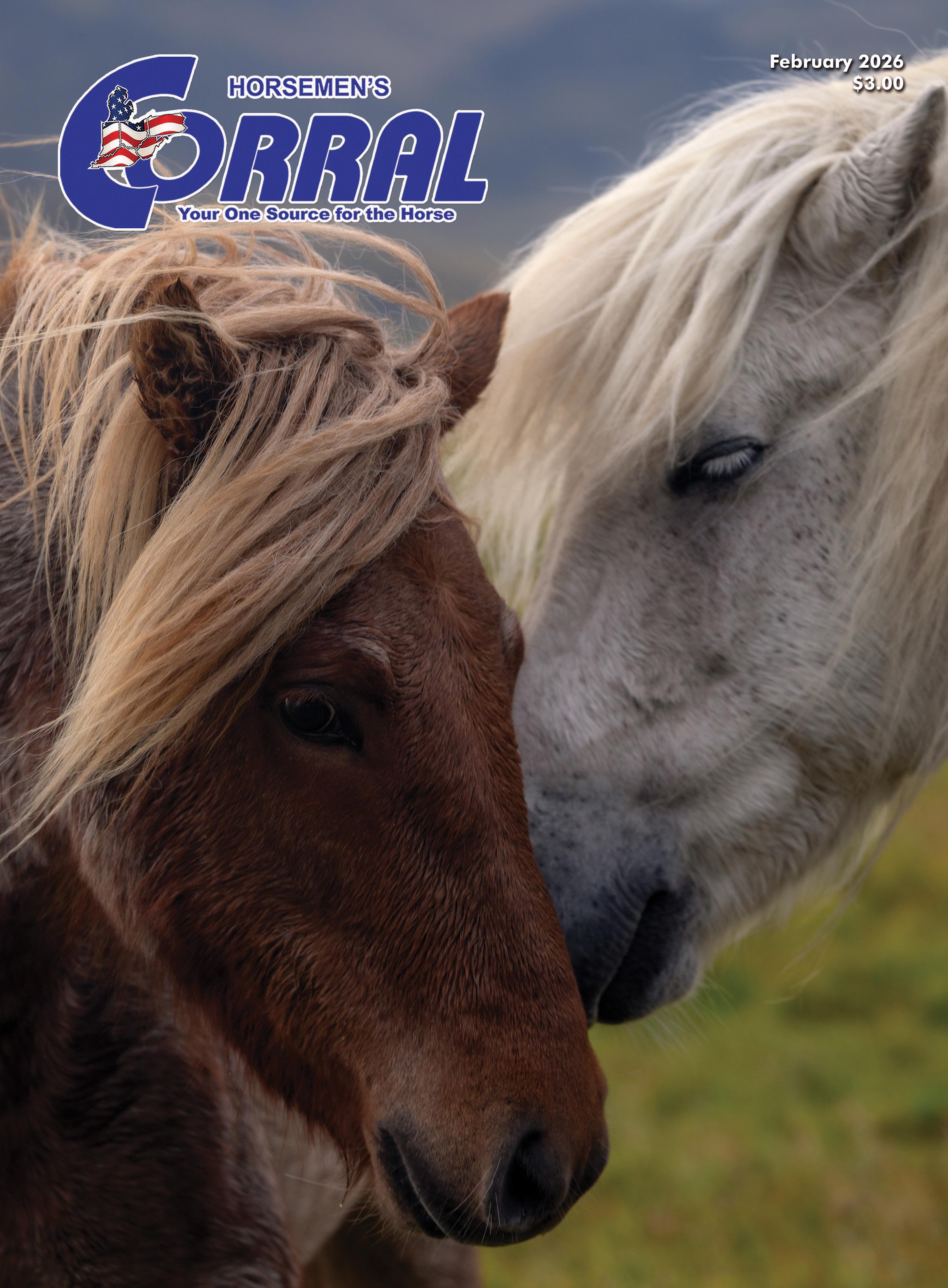 THE HORSEMEN’S CORRAL is published monthly by Horsemen’s Corral, 8283 Richman Road, Lodi, Ohio 44254. (ISSN 0164-6591). Published as Periodicals at the Lodi Post Office USPS 889-180 with additional entry points of Cleveland, OH 44101 and New Philadelphia, OH 44663. Periodicals postage paid at Lodi, Ohio, and additional entry offices. Subscriptions may only be purchased through Horsemen’s Corral member clubs. Single copies, $3.00 at select distributors. For subscriptions, address changes, and adjustments, write to: Horsemen’s Corral, P.O. Box 32, Lodi, Ohio 44254. Manuscripts, drawings, and other material submitted must be accompanied by a stamped self-addressed envelope.