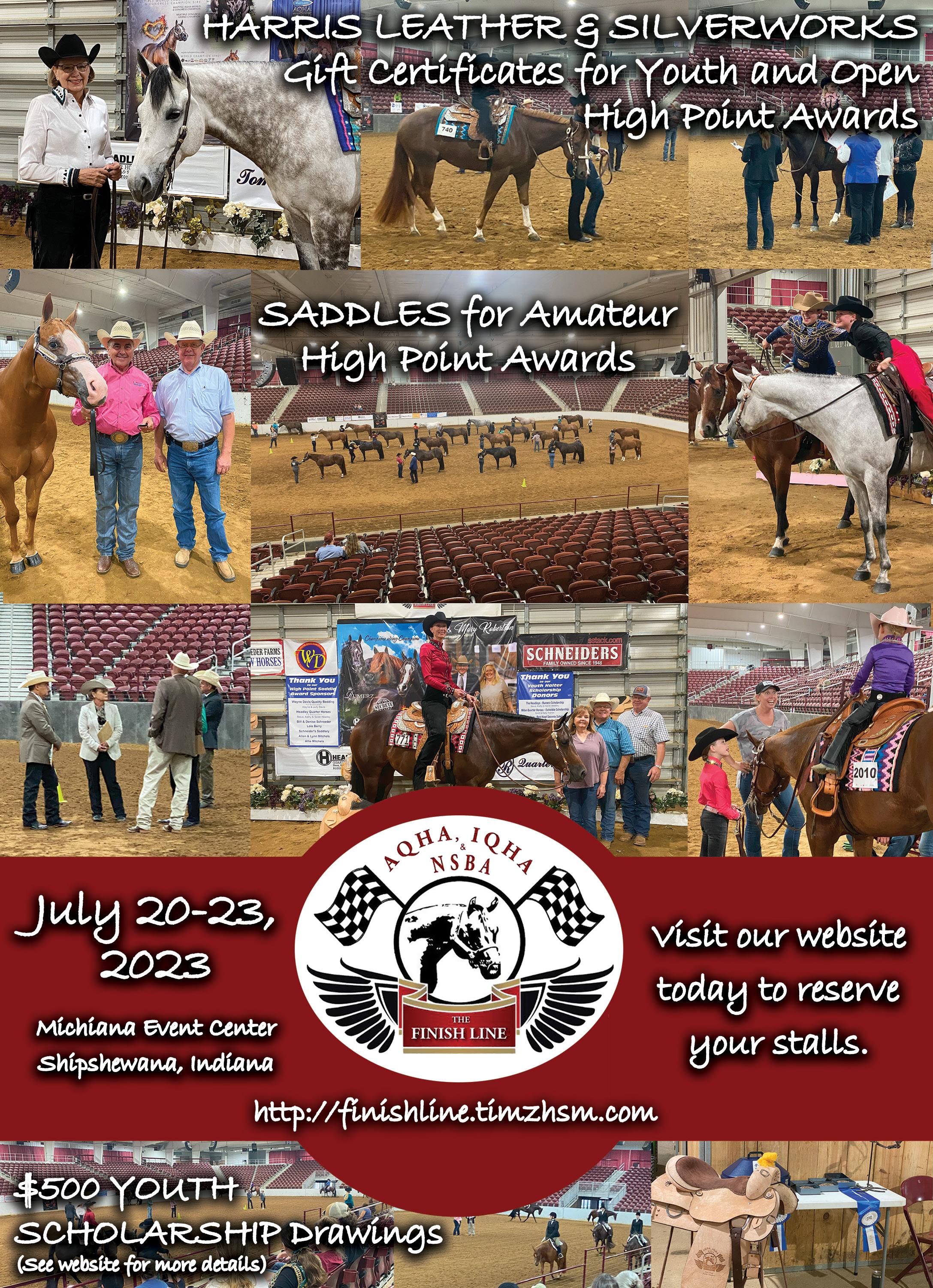 ABOUT THE COVER: Featured in the photo are CBAR APACHE, AQHA stallion show by Marcelo Guzman, owned by Frederick Farr, at Ohio Foundation Quarter Horse Association’s (OFQHA), first show of the season at Guernsey County Fairgrounds. CBAR APACHE took first place in working ranch horse at this show. He is also a 2013 ARHA World Champion in Jr. Ranch Horse, Res. World Champion in Jr. Ranch Reining and Res. Champion Conformation. CBAR APACHE is currently standing at stud in Sugarcreek, Ohio. Photo was taken by certified professional Photographer, She Marshall of Shaemar Snaps and Customs. All photos can be viewed at www. SMS-Customs.com or feel free to schedule a shoot today, just text or call 330/704-9459 or email shaemarsnaps@yahoo.com.