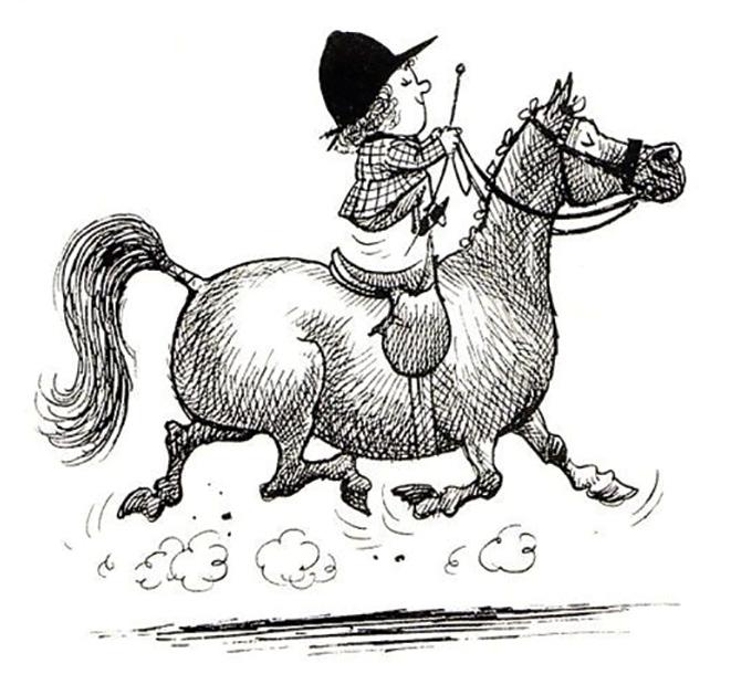 forehand heavy in their movements. Think about it, if I punch you in the mouth enough, not only will you hate me, but you stiffen your jaw, neck and back. By the way, just because a horse moves with their head low, does not mean they are collected, as addressed in previous articles. Bottom line...bump and wiggle fingers instead of pull on the reins and bump with your legs instead of squeeze. As soon as you get a change, no matter how small, release the pressure. And as I always say, “Don’t Pull!”