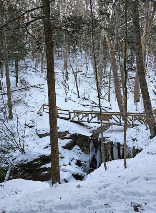 where you will be riding. There will be lots of trail work to do in the spring and many hands make light work, so join the fun. Marline Smalley is busy keeping in shape with the 100-mile hiking challenge in January. Check out the beautiful ice and snow at Mohican. You can’t get those pictures on horseback. She even convinced Margie to hike to the Tunnel of Dreams one really cold day. Gotta admire their spunk!