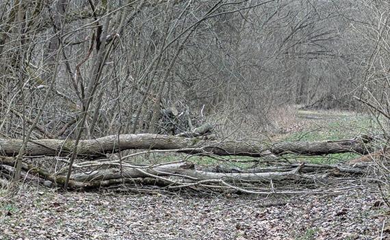 The Over the Hill Gang finally did manage to get a work day in on February 5. While Roger Pawsat, Harold McKeehan and Rick Wehrley had been out a couple times in January, the whole group was not. The first Wednesday fell on New Year’s Day, so we didn’t work then. And on the third Wednesday we were buried in snow. I was pretty amazed at how dry the trails were; I’d expected much more mud. I’m sure there was in other areas, but Chris Pawsat, Dan Weber, Tom Prudhoe and I got lucky. (The rest of the crew was on a different project, so I don’t know about them.)