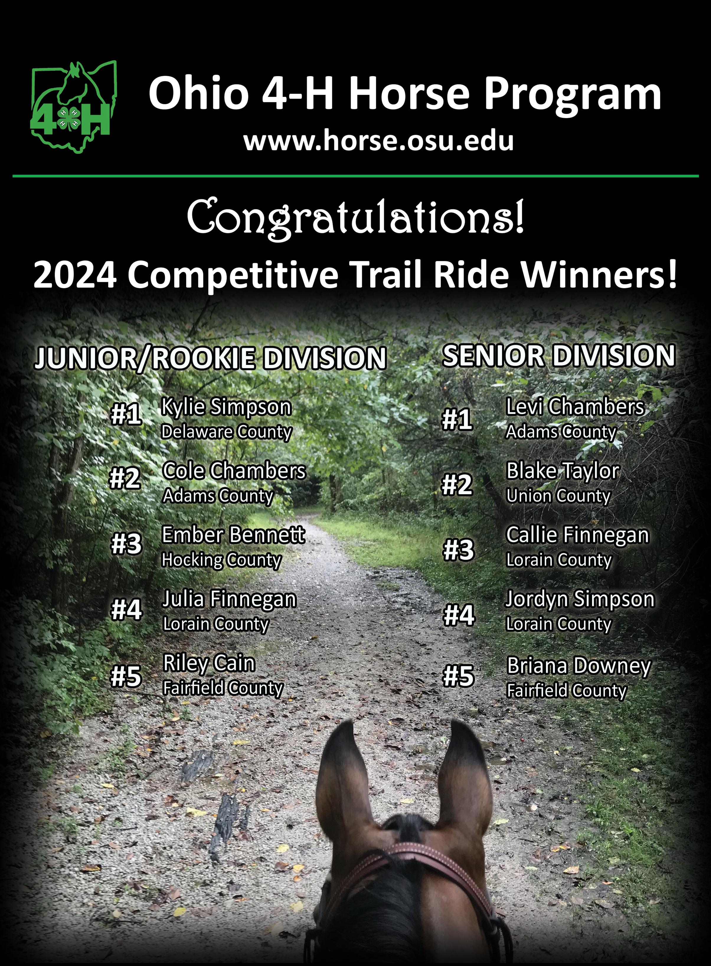 forest service. The forest service has also been hard at work on the trails. They made significant improvements to the large water crossing on the Red Trail. The banks are more sloped with much less mud making it safer and easier to cross, especially for the smaller horses. They also installed a new sign out front and improved the information kiosk. The kiosk has a large new map and is stocked with new small maps which accurately show the reroutes since the tornado a few years ago. It has been a work in progress and we are immensely thankful to Chad and his crew for all the work they have put in on the trails. Unfortunately, these improvements have led to some problems with people thinking that the trails are open to bicycles. This can create an extremely dangerous situation for riders, horses and bicyclists. The bike club members are particularly good about staying on the bike paths but some who are not regular bikers have tried to use the equine trails for biking. Remember, if they do not leave the trail when asked, just call #ODNR and a ranger will promptly arrive to take care of the situation.