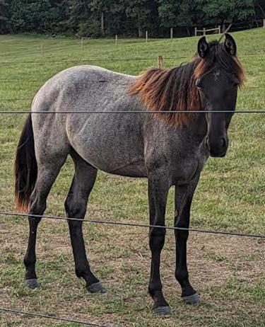 Wyatt, a blue roan Tennessee Walker stud colt, a month short of yearling status, captured her eye, impacted her pocketbook to the degree that any desire to further expand her herd, was instantly squelched. Fortunately, her new acquisition was halter broken, familiar with the horse trailer, loading and leading. Any qualms of continuous cantankerous antics were eliminated when Wyatt recognized he had been gelded before any attitude or misbehavior could deter his formal training and hinder progress. This young horse had been confined to a stall during his first year, the majority of the time by owners. Stimulated by the new found freedom of pasture and the curious company of co-inhabitant, Sheriff, an aged Quarter Horse gelding, changes occurred. This transition produced a flourishing effect on the youngster, learning to interact with another horse, as well as bond with his handler, Mick. Mila, Mick’s German Shepherd, unaccustomed to colts in general, relentlessly pursued his blue roan playmate, narrowly missing the agony of reckless abandon, when those sharp