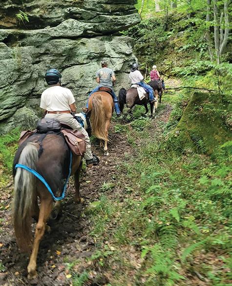 joined us for our potluck dinner and campfire which was held near Leigh Litman’s trailer right on the lake. It was a beautiful night for a campfire with good friends. Thank you to Jen Petersen for hosting a ride in Pennsylvania. She hosted a club ride at Two Mile Camp which is a County Park near the Allegheny National Forest. There were four rigs. The members who attended liked a change of scenery and the camp sites and trails were in excellent condition. This is sure to become a favorite on the camp schedule. Jen was kind enough to invite a couple of us to attend a ride at Allegheny Scenic Trail Rides camp which was the first Conservation Corps Camp in the nation. Jody Jackson and Sue