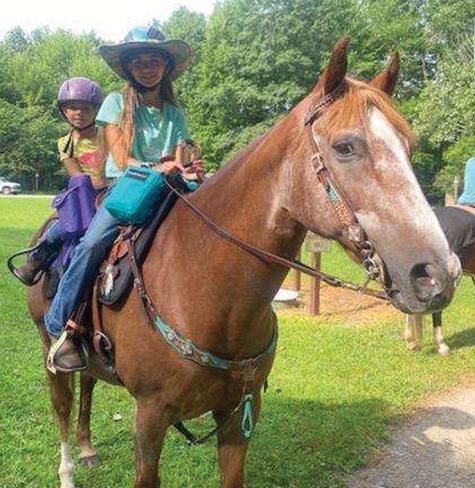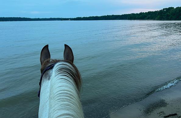 summer! A large group enjoyed a horse camping weekend at Pleasant Hill, including fireworks. Another group enjoyed a hot August camping weekend at the Roughton’s obstacle course and desensitization extravaganza, including a dip in the people pool. On a personal note, I spent a couple of hours at the Roughton’s in August as well. It was a fantastic opportunity for me and my Rocky Mountain mare, Luna. Teresa greeted me and gave me the low-down on all the fun and educational challenges she had planned that day. Since it was my first time having this experience, she frequently checked in to assist me and give me pointers to increase my success. What a horsewoman! Before leaving, Teresa made sure I travelled a little through their woods experience, which included areas like ‘the construction zone,’ mailboxes with treats inside, deer and lots of pool noodle obstacles. I travelled with Luna through