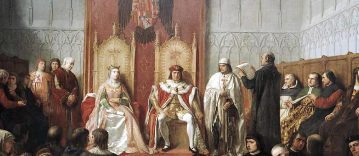 El deslumbrante siglo XV anunciaba el fin de la Edad Media y el inicio del renacimiento, la caza de brujas y la inquisición española. Por entonces, una heredera no podía emparentar con quien se le diera la gana sin contar con el beneplácito del rey, por supuesto. Sin embargo, la nobleza castellana y la Corona de Aragón presionaron a espaldas del monarca, de tal manera que Isabel accedió a casarse con Fernando. Acuerdo tremendamente asociado a la historiografía, podemos decir que se trata de acontecimientos un poco actuales, aquello de que los Reyes Católicos unieron sus reinos con su matrimonio y que así nació España. Casi como si de un alumbramiento mesiánico se tratase, los Reyes Católicos dieron a luz un Reino Unido, una recién nacida España.