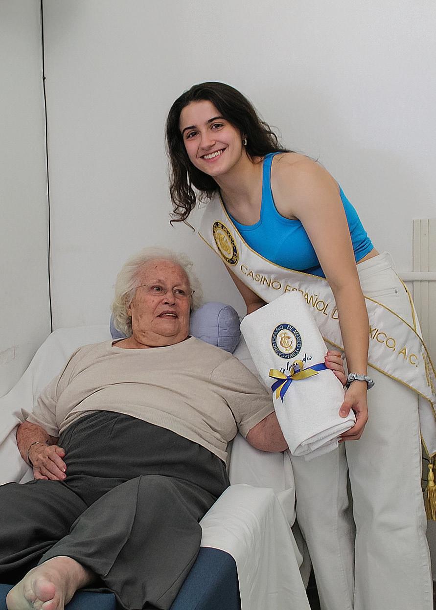 El 7 de mayo; Rosalía Vaqueiro Rodríguez madrina del Casino Español, acompañada por su madre, su hermana y un grupo de amigos que le han acompañado durante sus actividades, acudieron a cada una de las habitaciones de las salas de asilo para hacer entrega personal de un presente a nuestros asilados, conversar con ellos y acompañarlos por un momento, e invitarles a pasar la tarde con ella en el lugar que se ha convertido en centro de reunión por excelencia. Una visita sorpresa que cae de maravilla, ya que trae un presente por la mañana, y por la tarde les