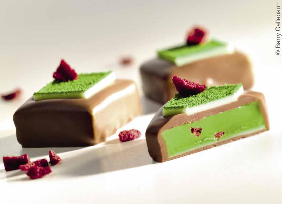 Cut the brownie into pieces of 3 X 12 cm. Pipe Callebaut caramel on one half and place a second half on top. Place in a freezer. Remove and dip the brownies in the chocolate glaze at 40°c.