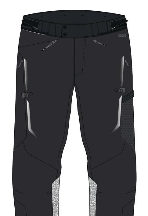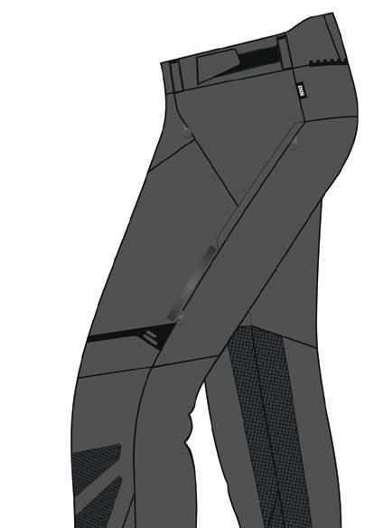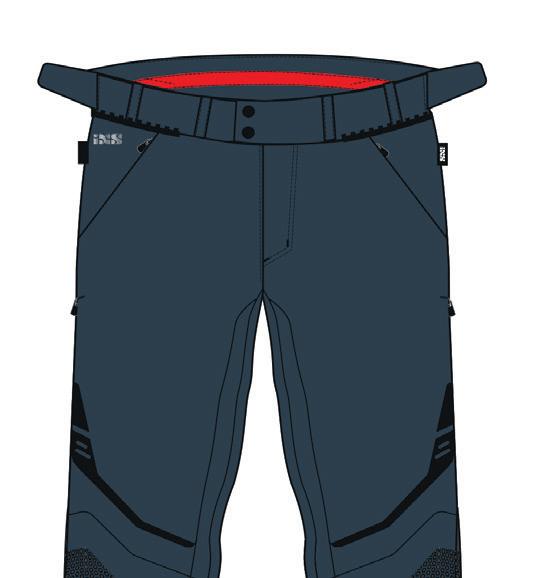 To allow for a perfect fit, the iXS developer team has designed a flexible waistband width - the waistband can be adjusted up to 12 centimetres. For this purpose, two adjustment areas were installed in the waistband.