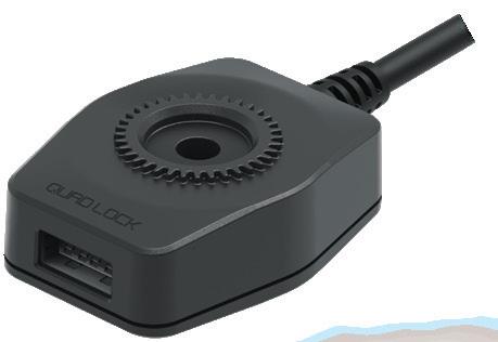 Das Ladegerät ist ordentlich unter dem Quad Lock-Halterkopf positioniert, um USB-Strom bereitzustellen, ohne dass lange Ladekabel erforderlich sind. Es unterstützt Quick Charge 2.0 für schnelles Laden und verfügt über integrierten Überspannungsschutz.
