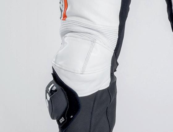 • Lederaufdoppelung an Schultern, Ellbogen, Gesäß und Knien
