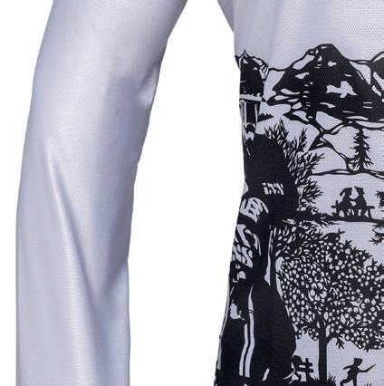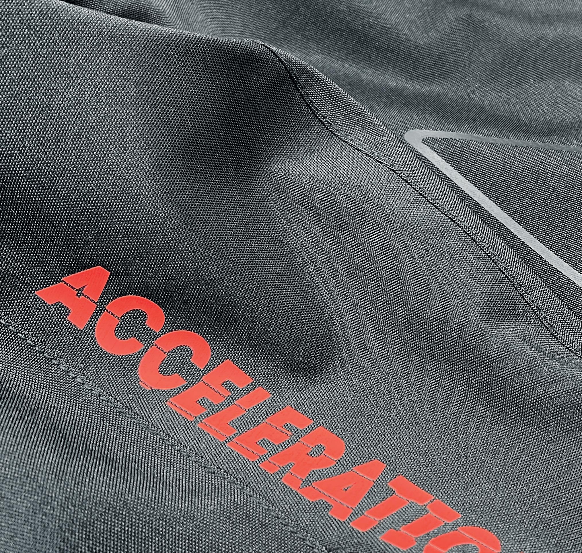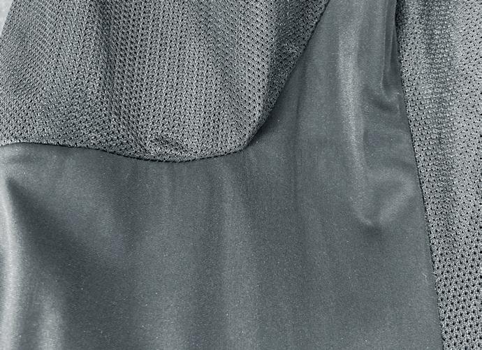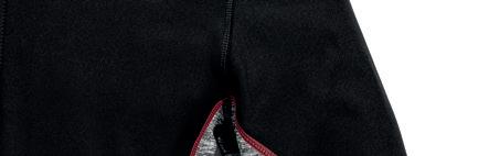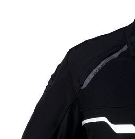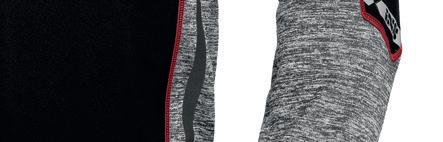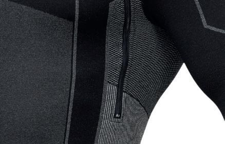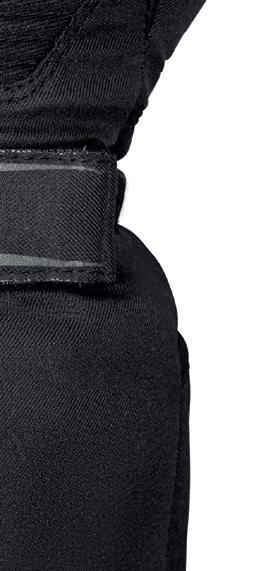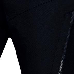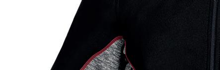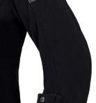 • Stretch-Material an den Innenarmen, im Schritt, in den Kniekehlen und an den Waden für mehr Bewegungsfreiheit