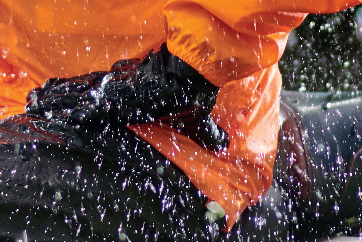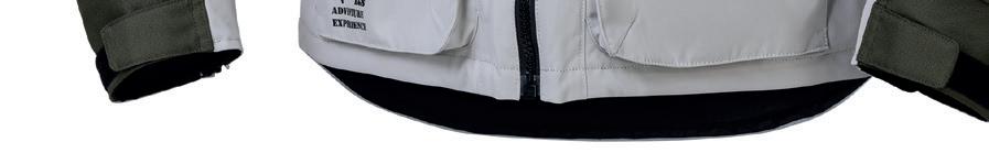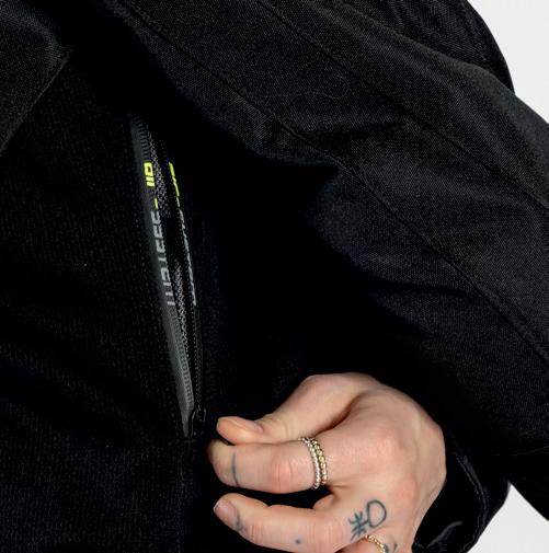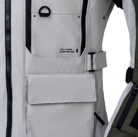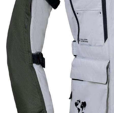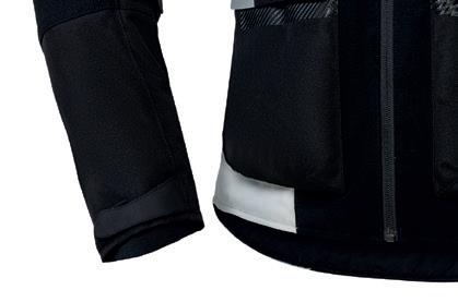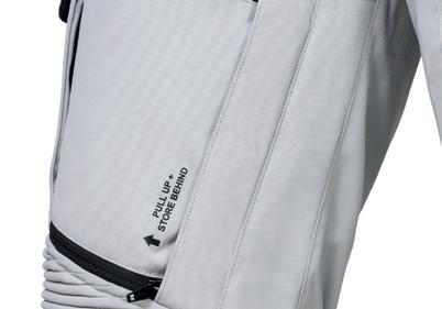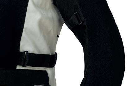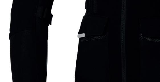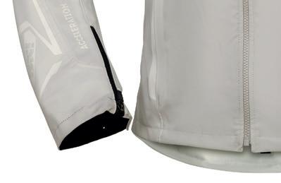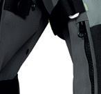 • Reißverschlüsse mit automatischer Arretierung am Ärmel- und Beinabschluss