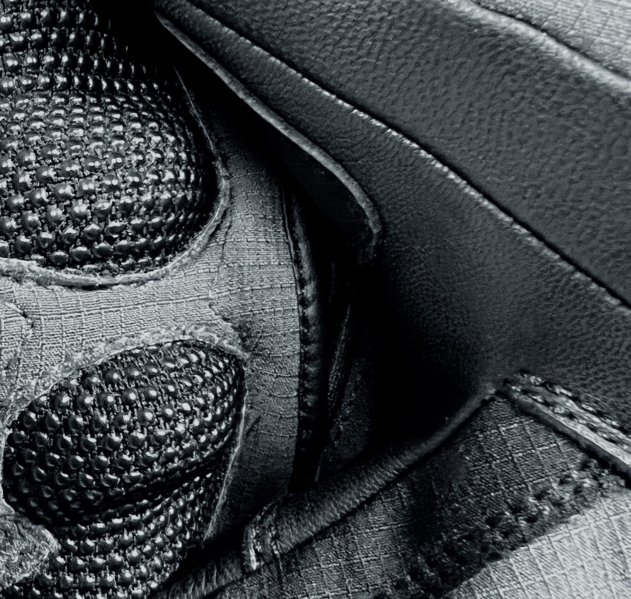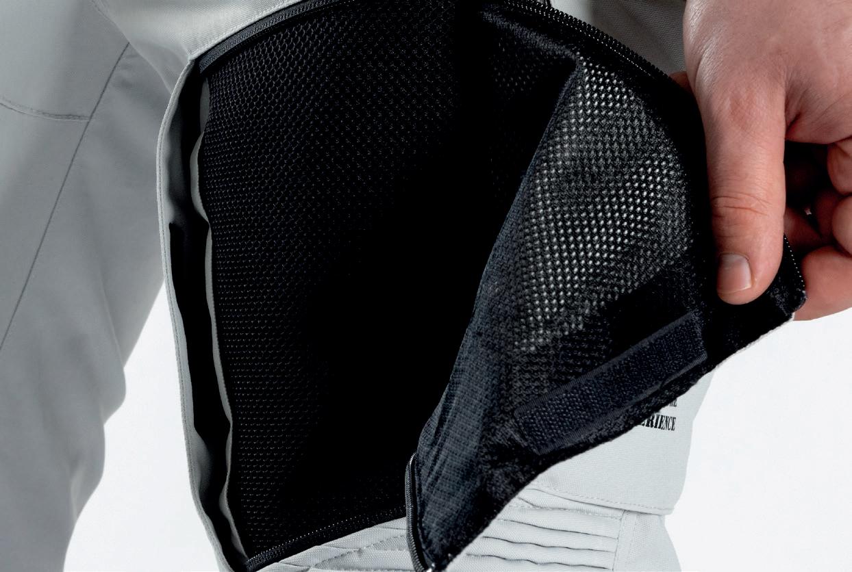 • Protektorentaschen S/E/K aus Leder, fest mit dem Außenmaterial verbunden, dadurch kein Verrutschen der Protektoren