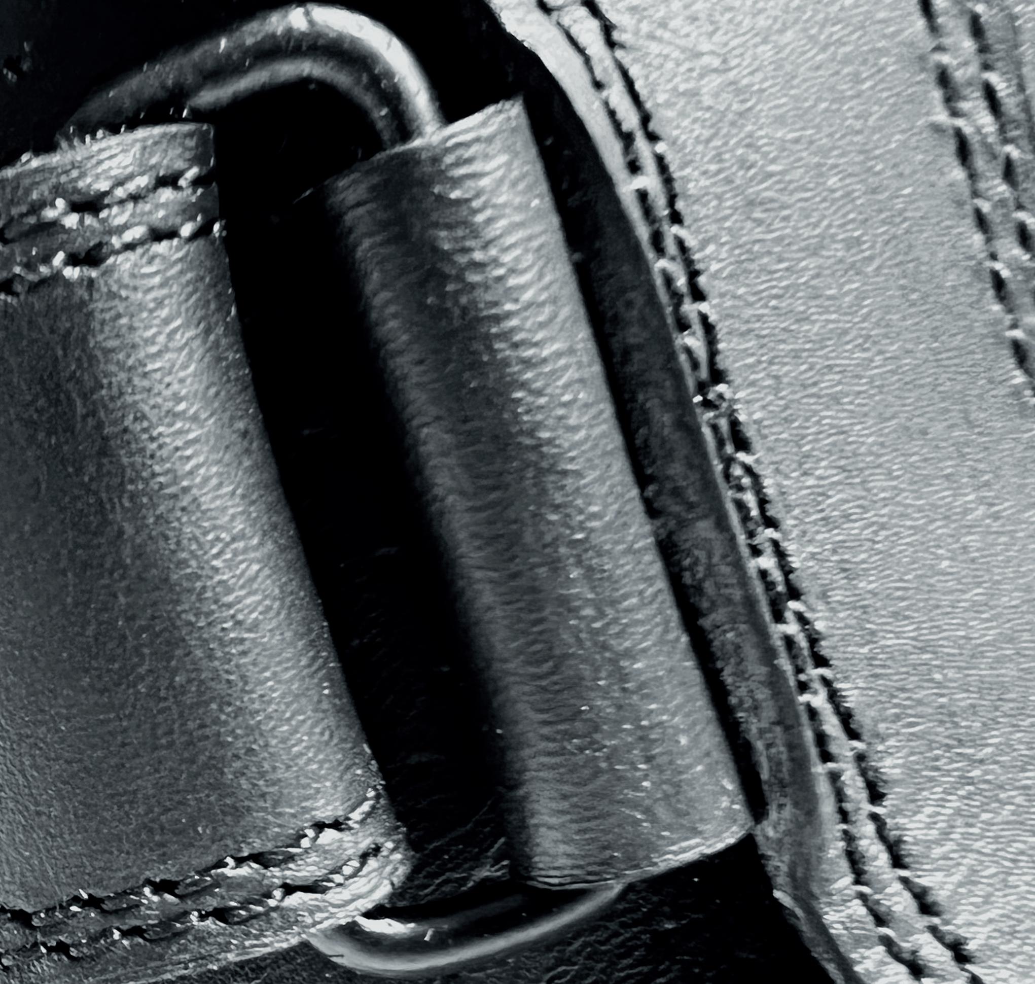 • Akkordeon-Stretch aus Leder an den Schultern, im Rücken, über den Knien und im Gesäßbereich für mehr Bewegungsfreiheit