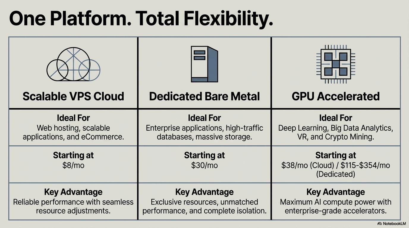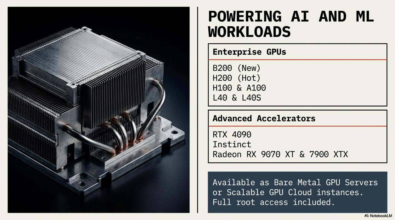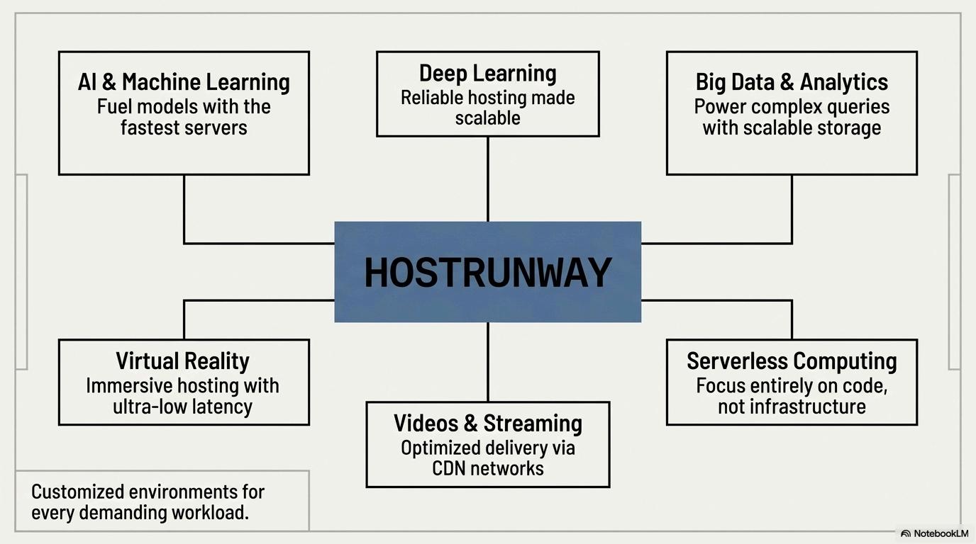 Hostrunway provides an enterprise-grade infrastructure that seamless delivers performance, flexibility, and scalability for modern businesses, AI applications, and mission-critical workloads. This is made possible with the high-end advanced tech that comes embedded inside these allowing organizations to run heavy data machine learning models, big data analysis, and high traffic applications smoothly.